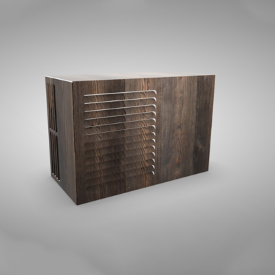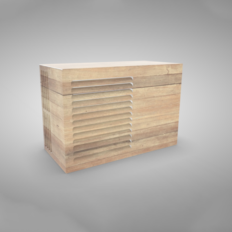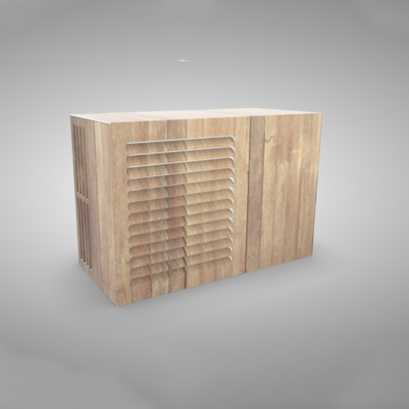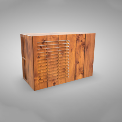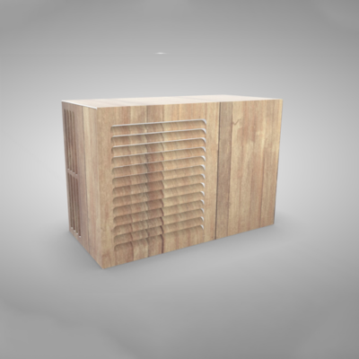 Dit is de laag staande variant, voorzien van een achterplaat. Hiermee is de buitenunit van alle kanten volledig onzichtbaar.